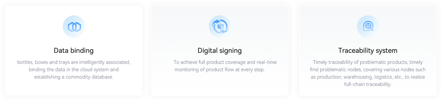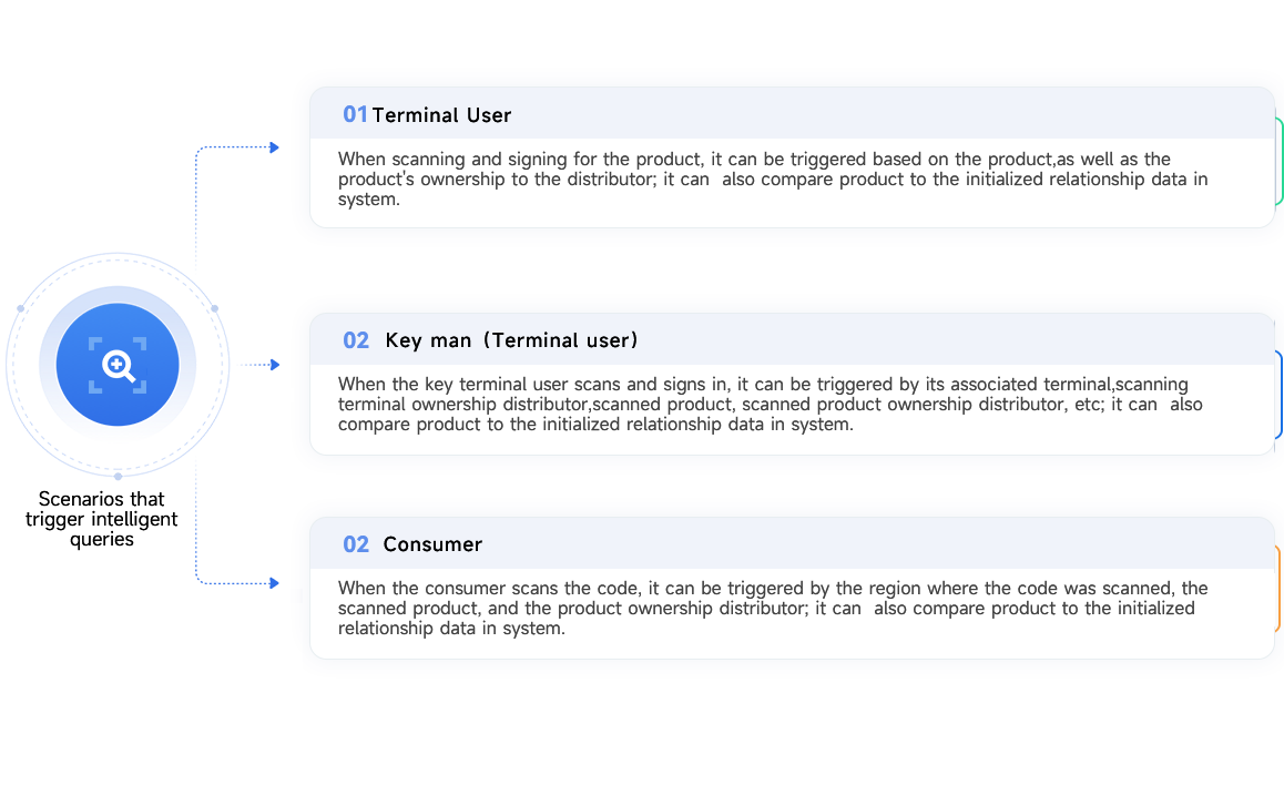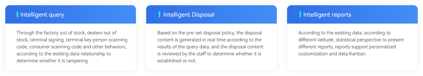 Realize effective monitoring of product flow, timely detection of tampering, shoddy products, enhance the transparency of the supply chain, enhance the control of the enterprise on the channel, for the enterprise market image escort.
